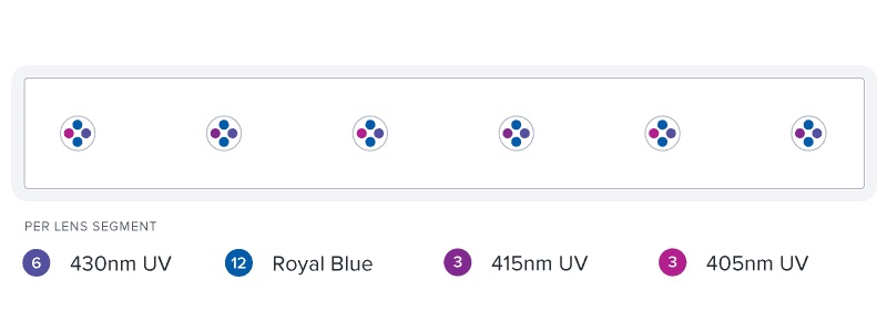 Die BLADE GLOW ist kompromisslos in ihrer Mission, Korallen zum Leuchten zu bringen. Sie schafft spektrale Spitzen im unteren Bereich des blauen Spektrums und im oberen Bereich des UV-Spektrums, die die Fluoreszenzspitzen der Korallen stimulieren.