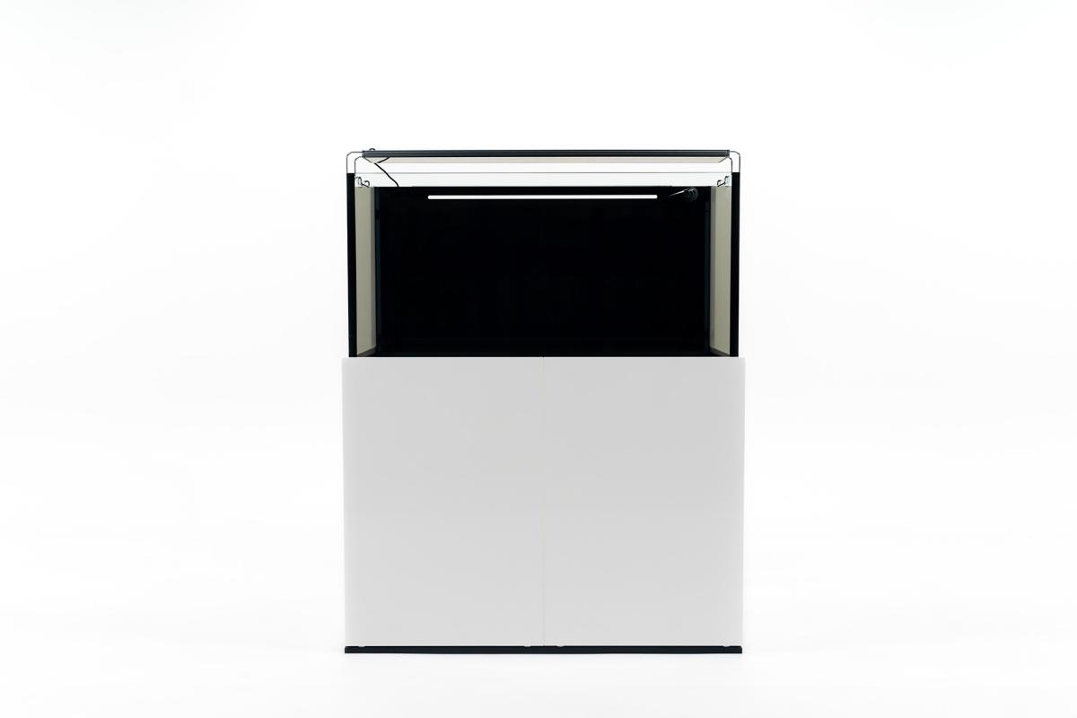 Das Reeftank Systemaquarium bietet eine gute und solide Basis für den erfolgreichen und kinderleichten Betrieb eines schönen Meerwasserbiotops. Dieses formschöne System unterscheidet sich nicht nur durch sein randloses Design von vielen herkömmlichen Aquarien, sondern besticht zudem durch ein sehr hochwertig verarbeitetes, pulverbeschichtetes Untergestell, welches in Fragen der Stabilität, Funktionalität und Langlebigkeit Maßstäbe setzt. Die Verblendung des Stahlrahmens zu einem formschönen und zeitlosen Möbelstück, erfolgt über wasserfeste Kunststoffplatten (Vekaplan S Integralschaumplatte), in die Magnete zur Befestigung eingelassen wurden. Zur besseren Belüftung des Schrankinneren bleibt die hintere Aquarienscheibe, an der sich der Ablauf befindet, ohne Verkleidung.