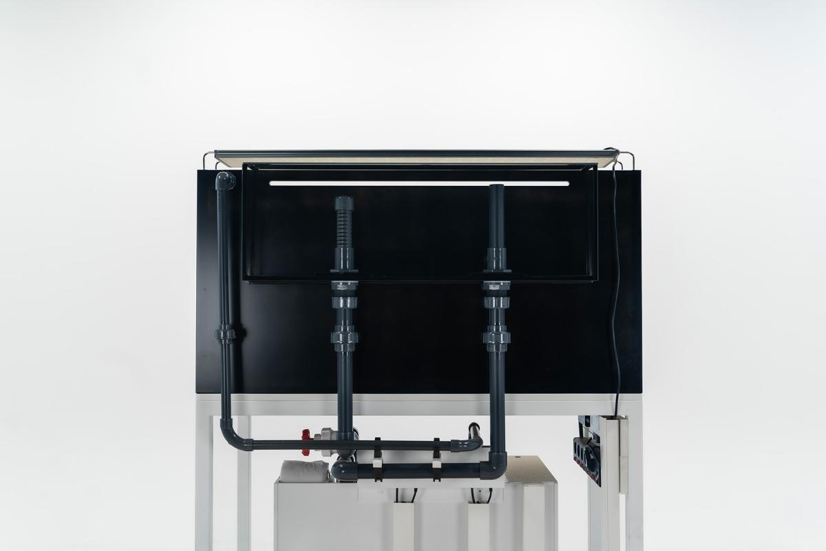 Die Schwachstellen anderer Systemaquarien wie: nicht aufeinander abgestimmte Technik, rostende Scharniere, aufgequollenes Holz und laute Ablaufgeräusche, wurden in der Planung dieses Systemaquariums in den Fokus genommen, um diese Fehler bereits von Beginn an auszuschließen und dem Kunden ein System an die Hand geben zu können, welches einfach funktioniert.