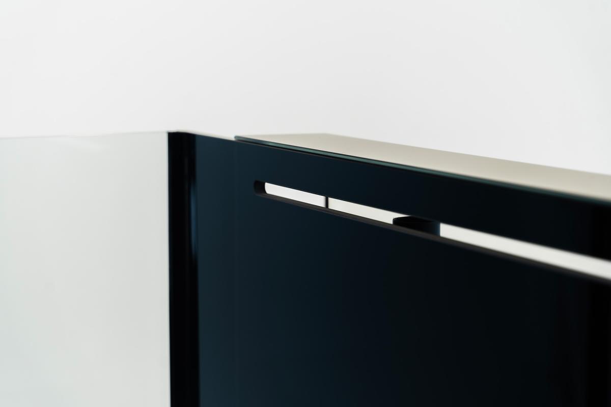 Das Aquarium ist in Floatglas gefertigt. Alle Glaskomponenten werden aus Floatglas -Made in Germany- gefertigt. Dieses garantiert spannungsfreie Glasscheiben höchster Qualität, welche sehr unempfindlich gegen verkratzen sind. Der Blick ins Aquarium bleibt auch auf Jahre ungetrübt. Um den Rucksacküberlauf zu verdecken, ist die Längsseite, an der sich der Rucksacküberlauf befindet, die Scheibe schwarz lackiert.