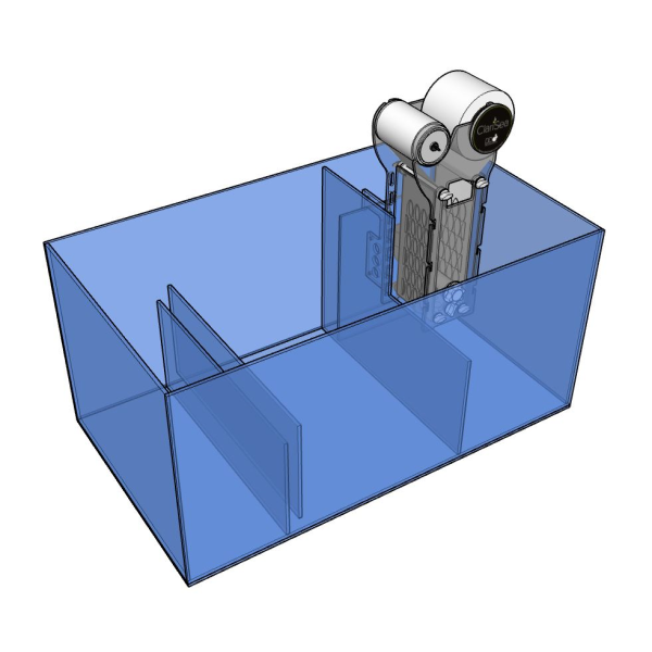 Das robuste, CNC-gefertigte Technikbecken bietet umfangreiche Filtermöglichkeiten und ist vollständig ClariSea-kompatibel. Die Filtersockenkammer kann ohne Werkzeug durch eine ClariSea-Einheit ersetzt werden – auch im laufenden Betrieb.