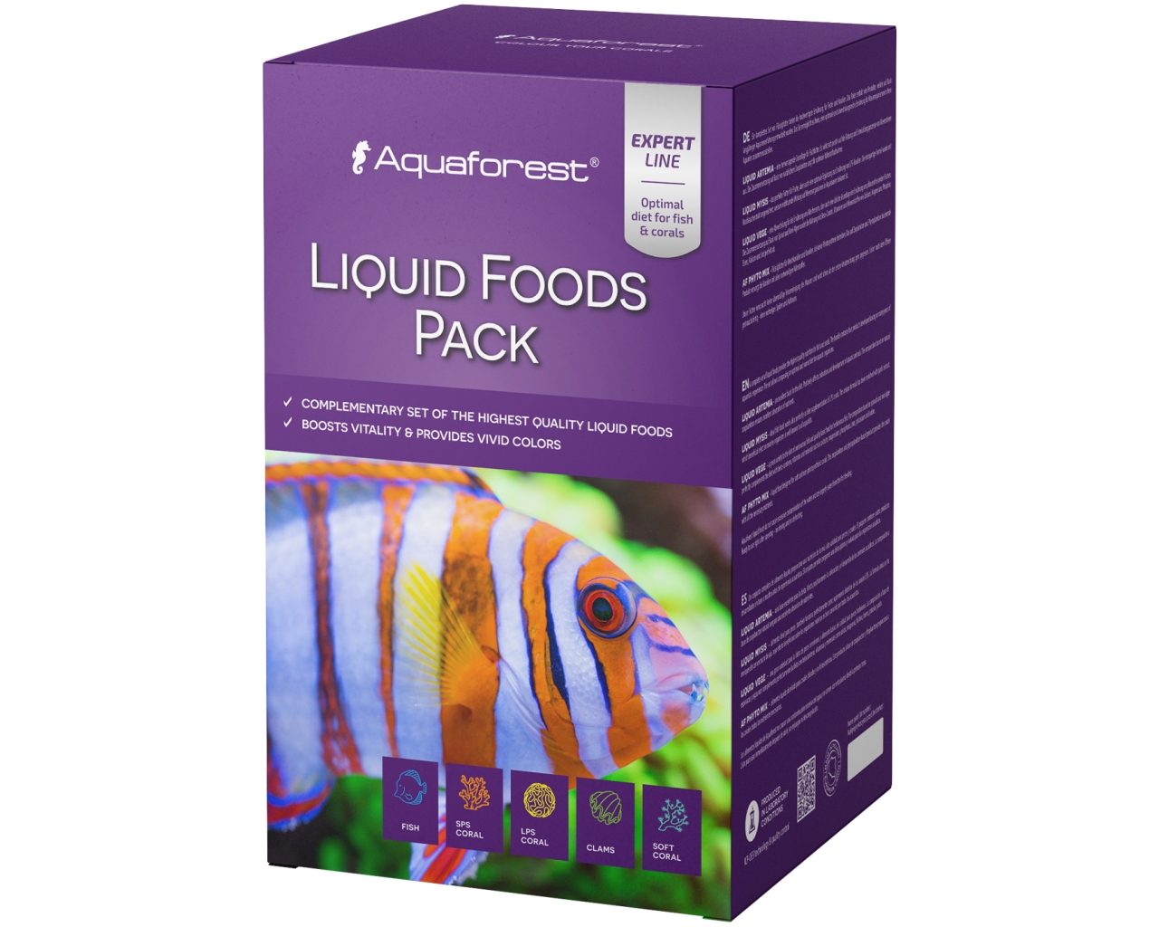 Dank seiner Zusammensetzung auf der Basis von natürlichem Zooplankton sorgt es für eine hervorragende Aufnahme von Nährstoffen. Liquid Mysis – Ideal für Fische und eine wertvolle Ergänzung für die Ernährung von LPS-Korallen, angereichert mit Knoblauchextrakt zur Stärkung der Immunität aller Aquarienorganismen. Liquid Vege – Mit Spinat und Nori-Algen formuliert, ergänzt es die Ernährung perfekt mit Beta-Carotin, Vitaminen und Mineralien wie Kalzium, Magnesium, Phosphor, Eisen, Kalium und Jod. AF Phyto Mix – Speziell für Weichkorallen und nicht-photosynthetisierende Korallen.
