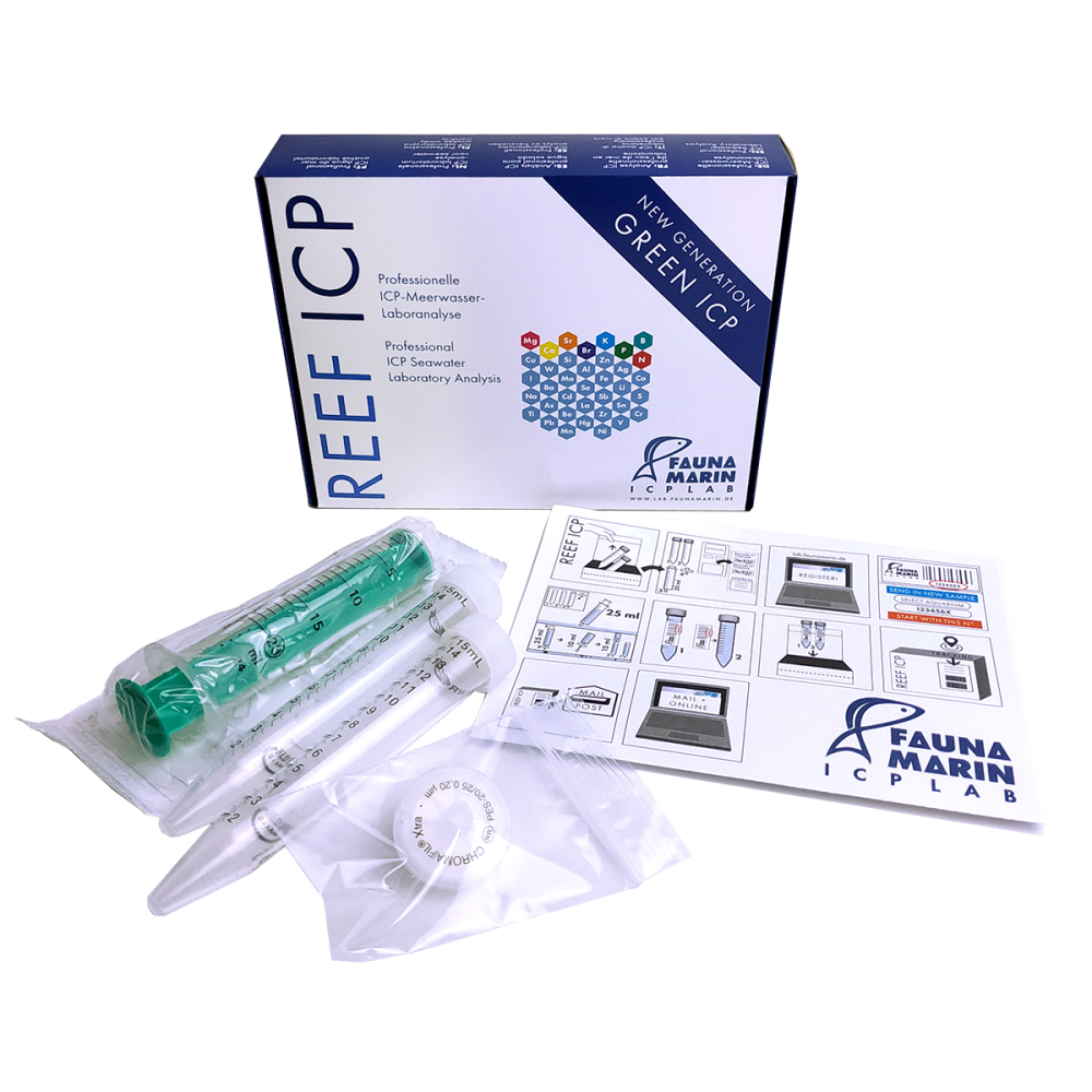 Der Fauna Marin Reef ICP Test gibt einen schnellen und einfachen Überblick über 37 Wasserwerte im Meerwasser.