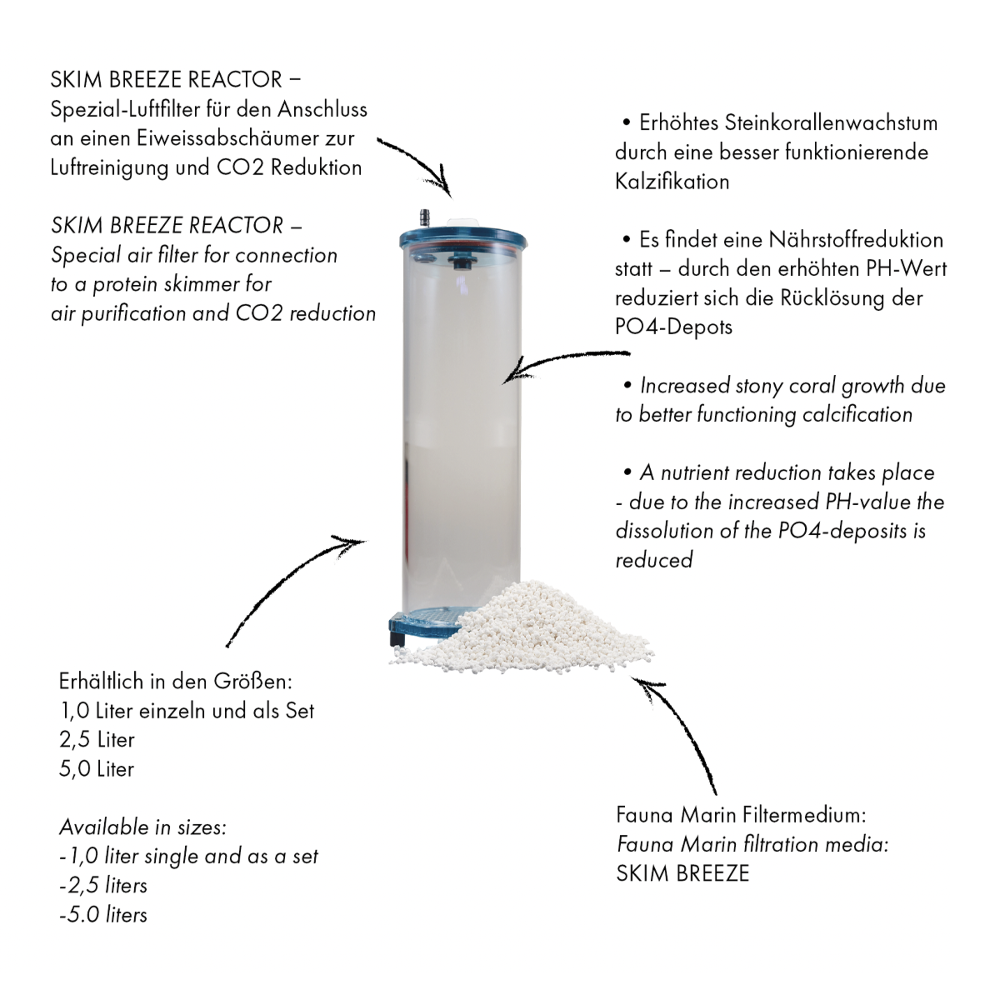 Fauna Marin Skim Breeze Reaktor ist der Spezial-Luftfilter für den Anschluss an einen Eiweissabschäumer zur Luftreinigung und CO2 Reduktion.