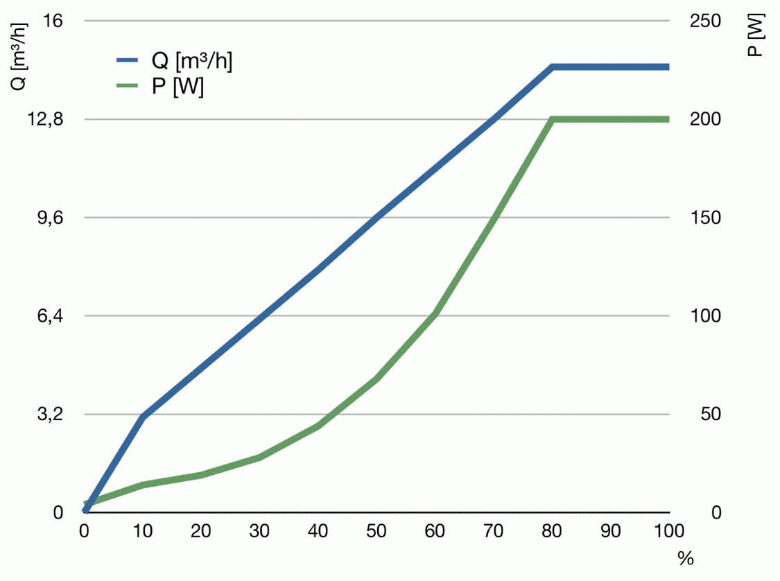 - Regelbarer Drehzahlbereich (0 … 100%)