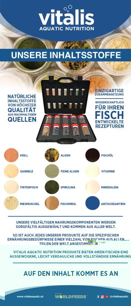 Stellen Sie die Fütterung ein, sobald Sie festellen, dass das Interesse Ihrer Fische an VITALIS PLEC PELLETS nachlässt.